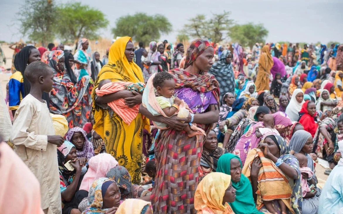 Hundreds of newly arrived Sudanese refugees gather in a refugee resettlement area. Image source: UNHCR